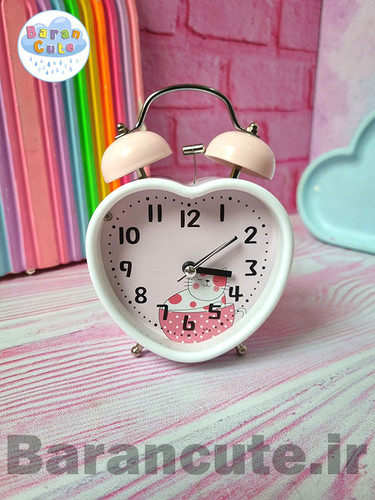 ساعت رومیزی فانتزی زنگ دار بدنه فلزی قلبی طرح پیشی صورتیناموجود