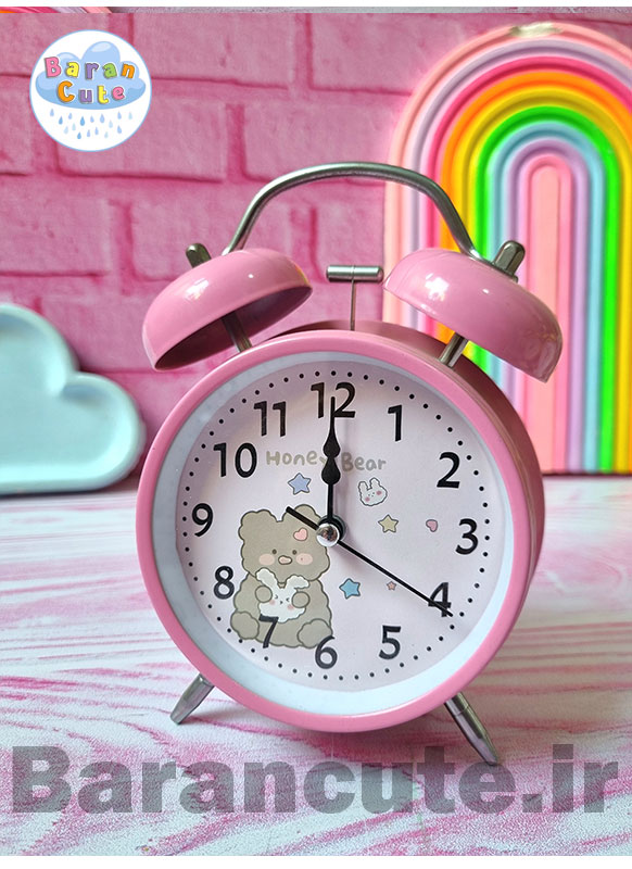ساعت رومیزی سایز بزرگ فانتزی زنگ دار بدنه فلزی طرح تدی صورتی۴۲۰٬۰۰۰ تومان