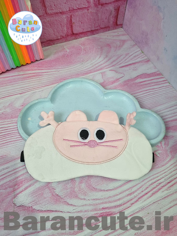 چشم بند خواب فانتزی وارداتی پولیشی کمپرس دار طرح پیشی صورتی