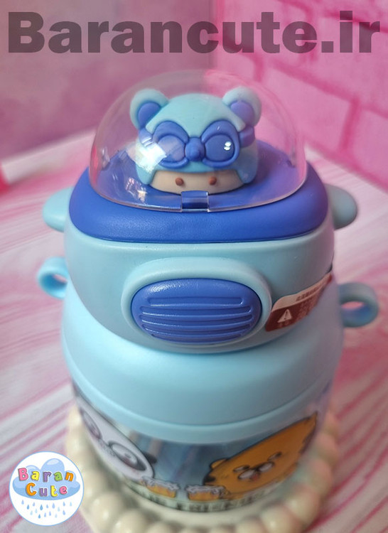 ویژگی های قمقمه: نی دار ، دارای قفل برای محافظت از نی ، دارای بند بلند ، دارای یک خرس بامزه بر روی در
