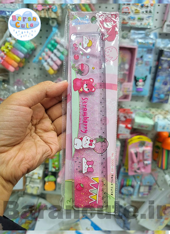 خط کش فانتزی اکواریومی طرح خرس توت فرنگی صورتی