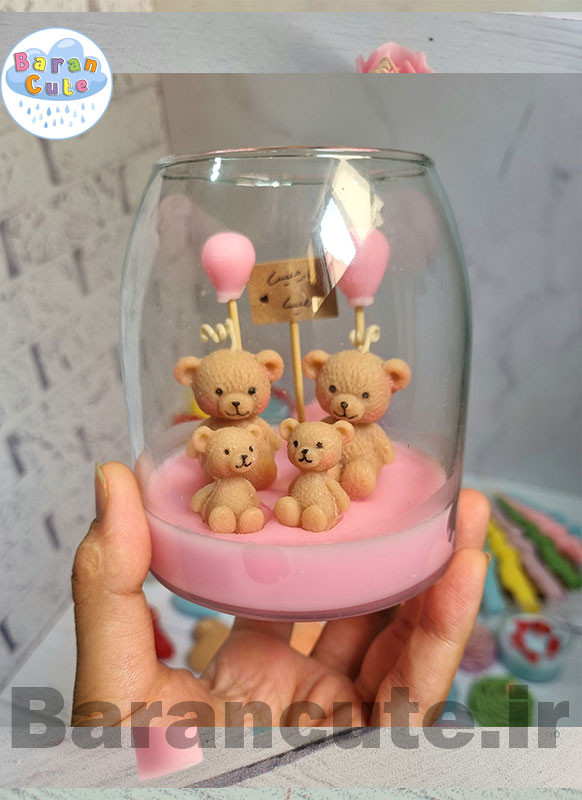 شمع دستساز عطری طرح خانواده تدی در رنگ دلخواه