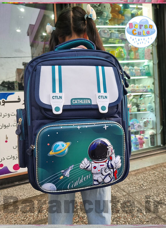 کیف و کوله پشتی مدرسه خارجی و وارداتی برجسته طرح فضانورد سبز