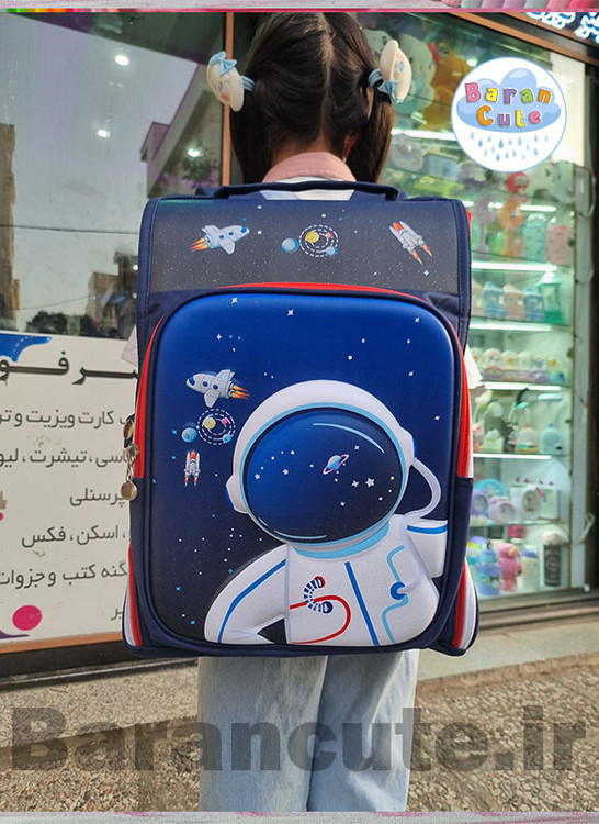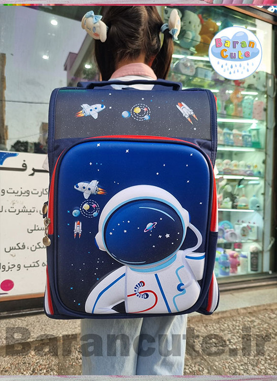 کیف و کوله پشتی مدرسه خارجی و وارداتی صندوقی برجسته شاین دار طرح فضانورد