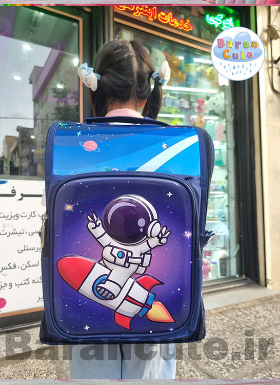 کیف و کوله پشتی مدرسه خارجی و وارداتی صندوقی برجسته براق طرح فضانورد