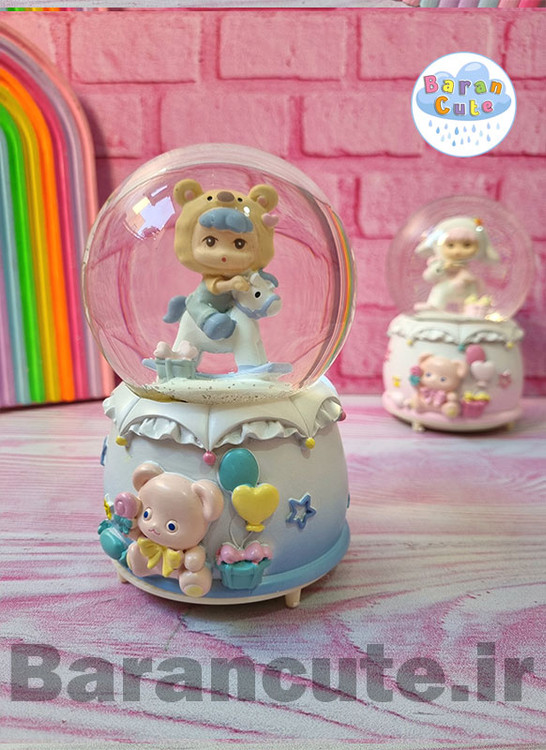گوی موزیکال پمپی برفی چراغ دار سایز بزرگ طرح پسر و اسب کیوت