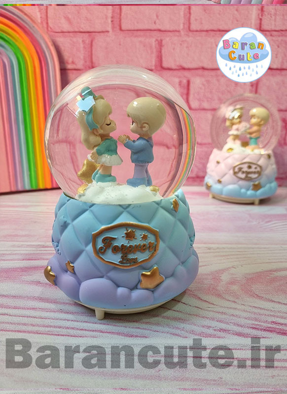 گوی موزیکال پمپی برفی چراغ دار سایز بزرگ طرح دختر و پسر عاشق