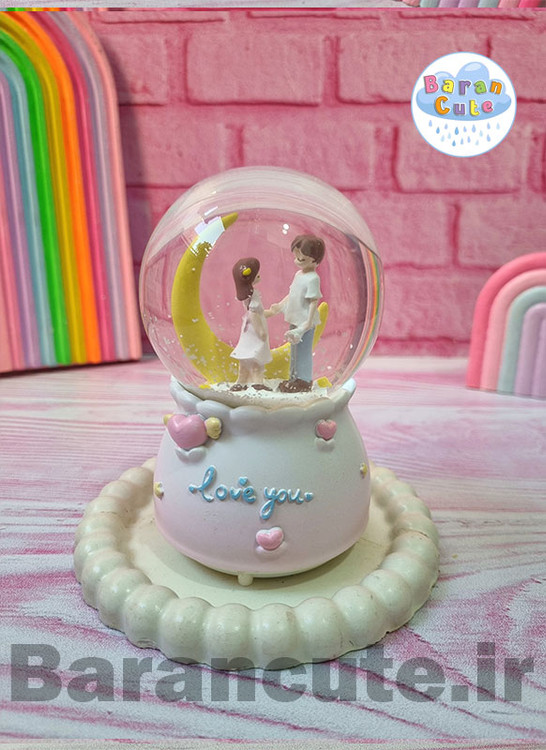 گوی موزیکال برفی چراغ دار (سایز متوسط) طرح عاشقانه روی ماه
