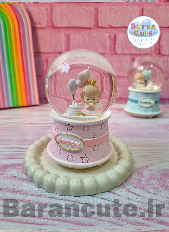 گوی موزیکال برفی چراغ دار (سایز متوسط) طرح تولد صورتی