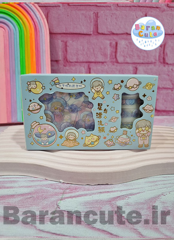 پک چسب واشی 5 عددی به همراه استیکر ورقه ای طرح دختر فضایی