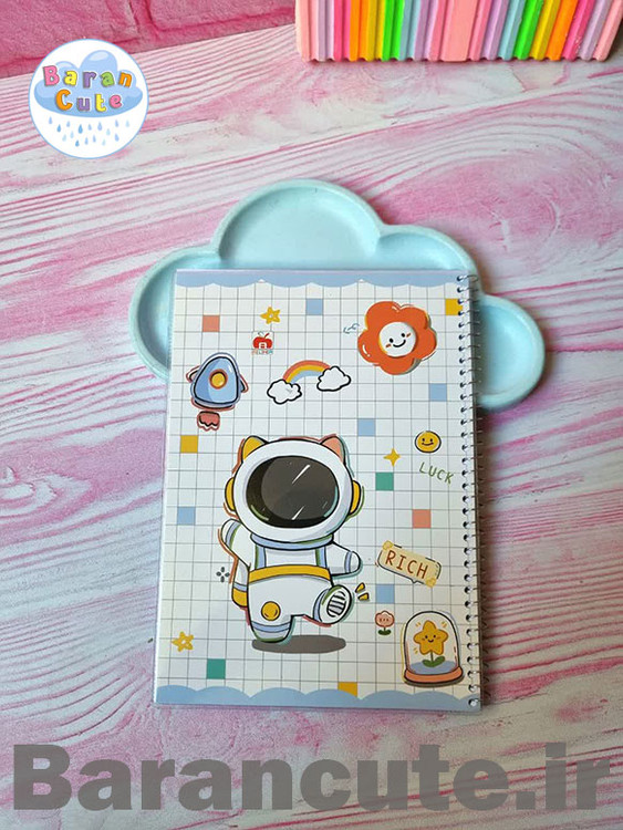 دفتر 60 برگ نهال سیمی جلد شده شطرنجی طرح فضانورد