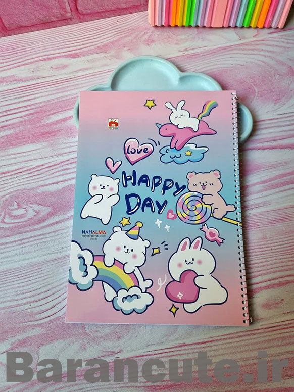 دفتر نقاشی سایز بزرگ A4 سیمی نهال 60 برگ طرح حیوانات کیوت