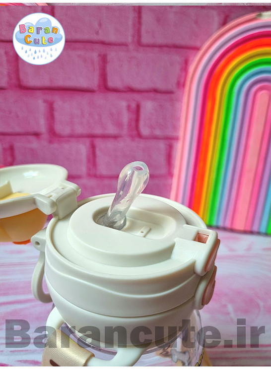 دارای قفل درب ، نی دار و لب نوش، همراه با محافظ سیلیکونی