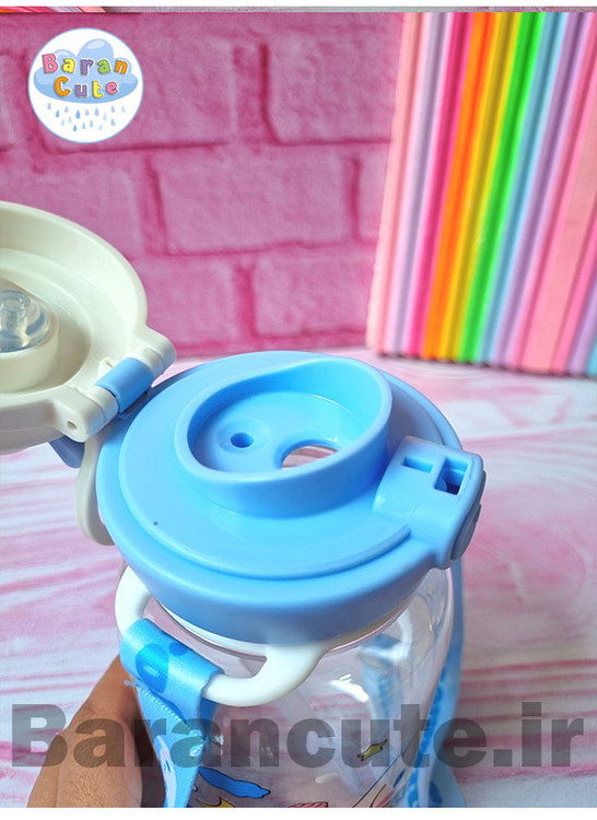 دارای قفل درب ، نی دار و لب نوش، همراه با محافظ سیلیکونی
