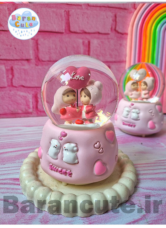 گوی موزیکال برفی چراغ دار (سایز متوسط) طرح عاشقانه صورتی