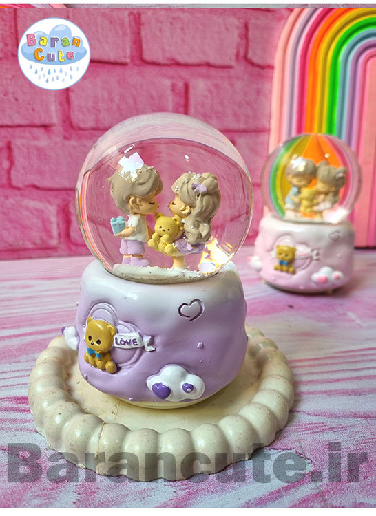 گوی موزیکال برفی چراغ دار (سایز متوسط) طرح دختر و پسر کیوت صورتی