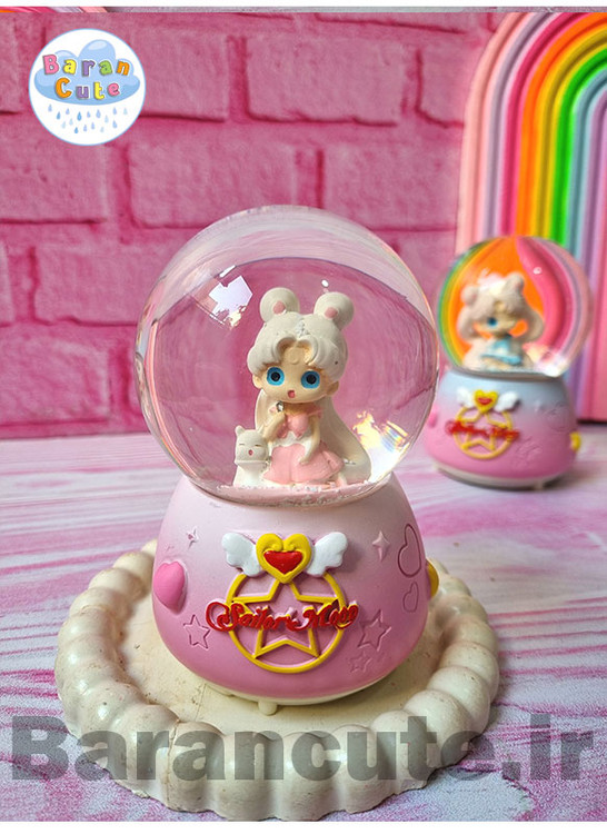 گوی موزیکال برفی چراغ دار (سایز متوسط) طرح دخترکیوت صورتی