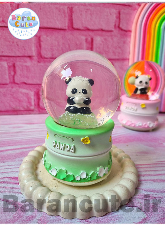 گوی موزیکال برفی چراغ دار (سایز متوسط) طرح پاندا سبز
