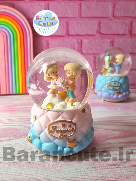 گوی موزیکال برفی چراغ دار (سایز متوسط) طرح عاشقانه دختر و پسر