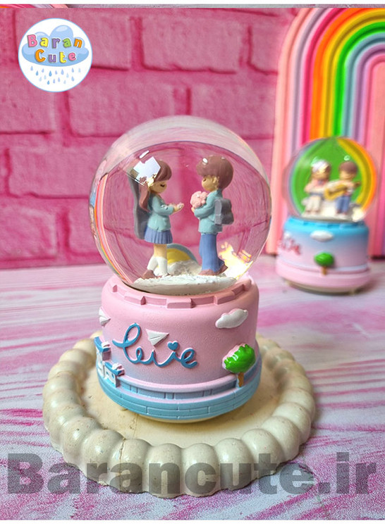 گوی موزیکال برفی چراغ دار (سایز متوسط) طرح عاشقانه