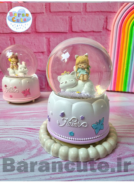 گوی موزیکال پمپی برفی چراغ دار سایز بزرگ طرح دختر و پیشی