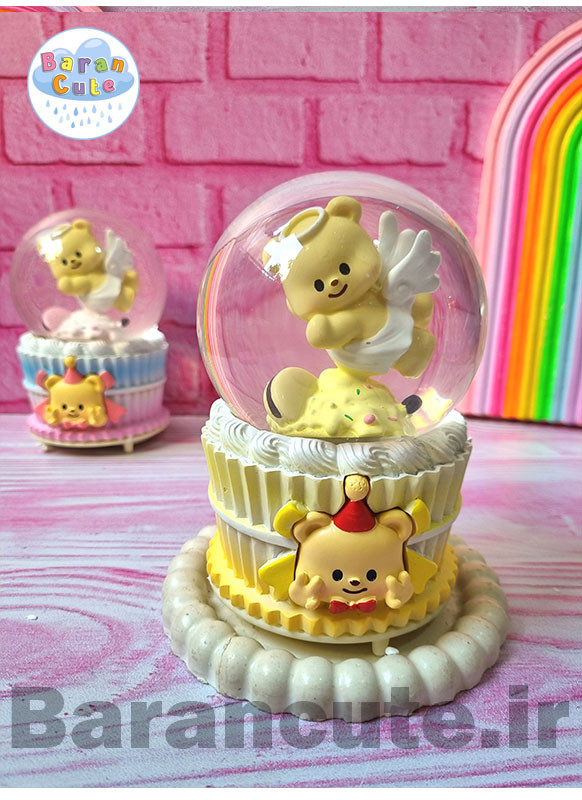 گوی موزیکال پمپی برفی چراغ دار سایز بزرگ طرح تدی فرشته