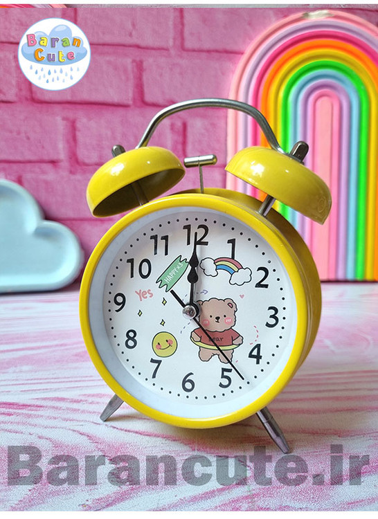 ساعت رومیزی سایز بزرگ فانتزی زنگ دار بدنه فلزی طرح خرس زرد
