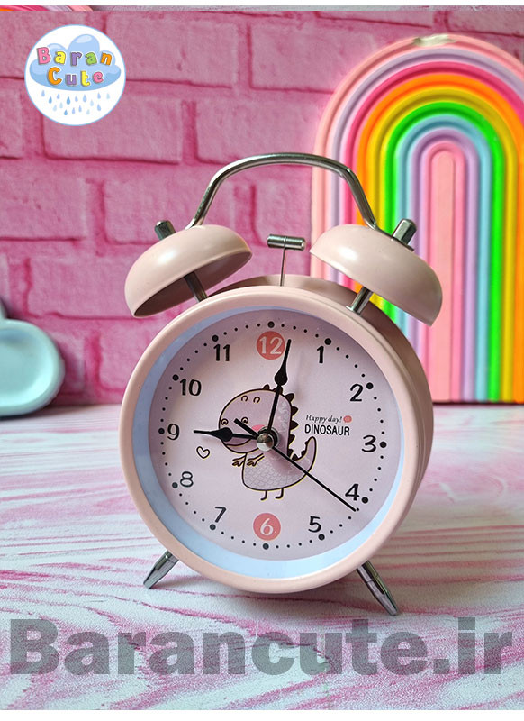 ساعت رومیزی سایز بزرگ فانتزی زنگ دار بدنه فلزی طرح دایناسور صورتی