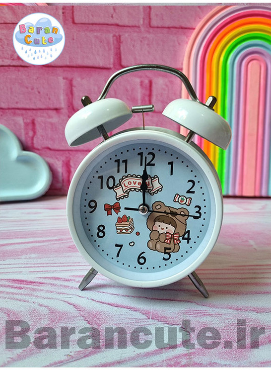 ساعت رومیزی سایز بزرگ فانتزی زنگ دار بدنه فلزی طرح کیوت سفید