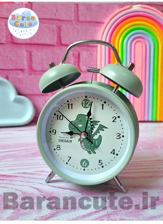 ساعت رومیزی سایز بزرگ فانتزی زنگ دار بدنه فلزی طرح دایناسور سبز