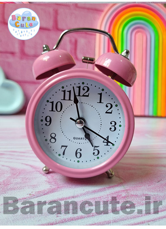 ساعت رومیزی سایز کوچک فانتزی زنگ دار بدنه فلزی طرح کلاسیک صورتی