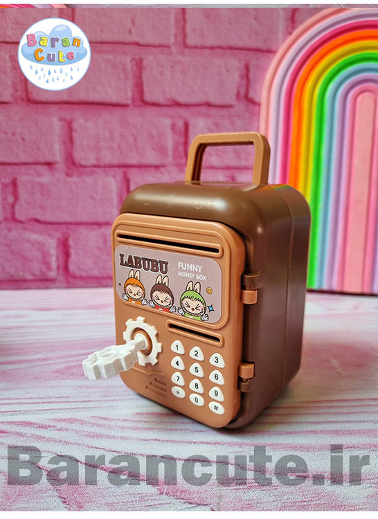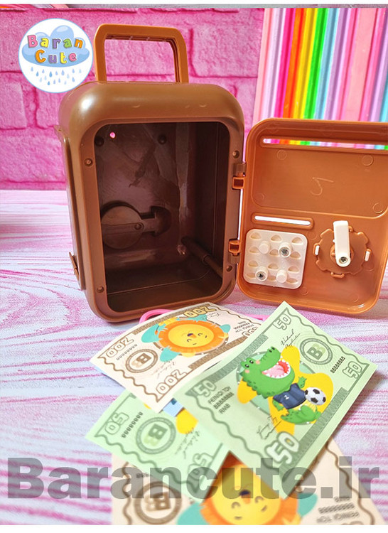 ویژگی: دارای کلید و محفظه ی نگهداری کلید بر پشت قلک ( دکمه های روی قلک نما هستن )