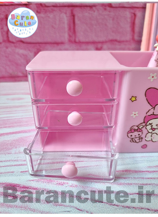 جاقلمی فانتزی سانریو برای نگهداری قلم، مداد یا خودکار استفاده می شود. این نوع جاقلمی دارای بدنه ای ساخته شده ازپلاستیک فشرده می باشد و همچنین کشوهای این جاقلمی باعث کاربردی تر شدن جاقلمی برای جاگذاری پاکن و اقلام کوچک تعبیه شده است روی آن جلوه ای ویژه به این محصول بخشیده است. همچنین به عنوان زینت بخش میز دانش آموزان و دانشجویان نیز مورد استفاده قرار میگیرد.دوام بالا و همچنین طرح های ترند و کیوت و جذاب بودن و تنوع بالای طرح ها و رنگ ها باعث خاص بودن این جاقلمی گردیده است.