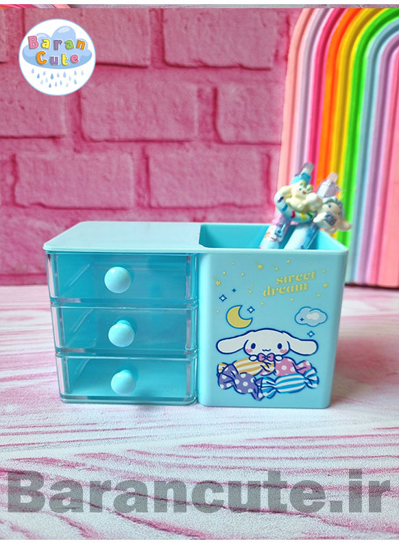 جاقلمی فانتزی سانریو برای نگهداری قلم، مداد یا خودکار استفاده می شود. این نوع جاقلمی دارای بدنه ای ساخته شده ازپلاستیک فشرده می باشد و همچنین کشوهای این جاقلمی باعث کاربردی تر شدن جاقلمی برای جاگذاری پاکن و اقلام کوچک تعبیه شده است روی آن جلوه ای ویژه به این محصول بخشیده است. همچنین به عنوان زینت بخش میز دانش آموزان و دانشجویان نیز مورد استفاده قرار میگیرد.دوام بالا و همچنین طرح های ترند و کیوت و جذاب بودن و تنوع بالای طرح ها و رنگ ها باعث خاص بودن این جاقلمی گردیده است.