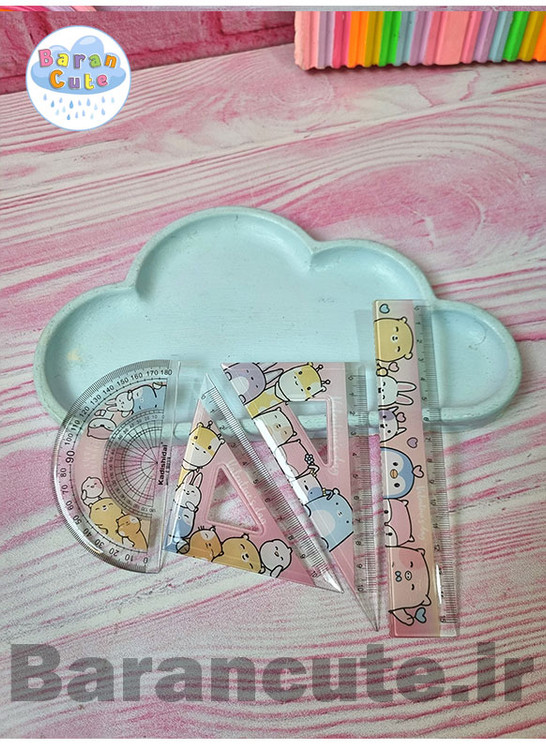 ست گونیا و نقاله طرح دار خط کش کیفی طرح پنگوئن های بامزه