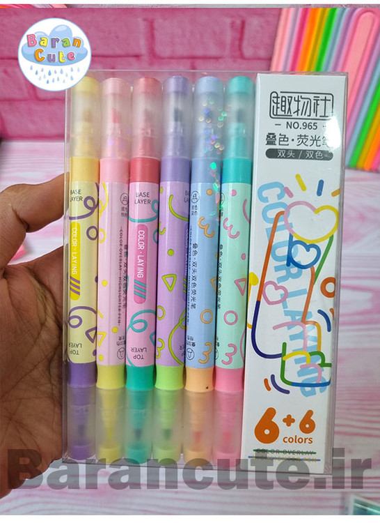 شما با داشتن این هایلایتر 6 عددی 12 رنگ هایلایتر دارید چون هر یک عدد هایلایتر دارای 2 رنگ متفاوت است