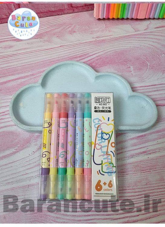 هایلایتر فانتزی پاستیلی دو سر 12 رنگ بسته 6 عددی