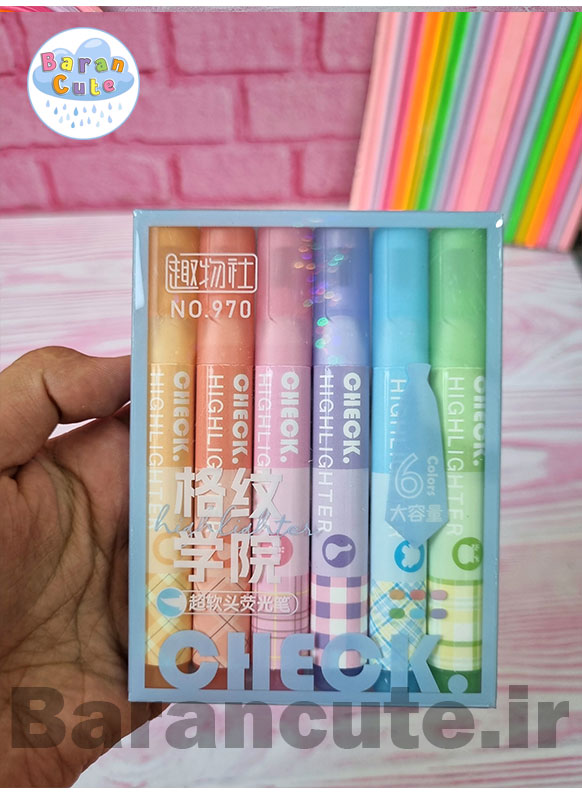 هایلایتر فانتزی پاستیلی قلمی بزرگ بسته 6 عددی