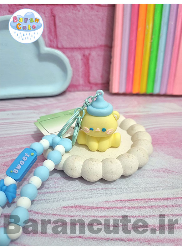 جاکلیدی جاسویچی فانتزی همراه با بند آویز مرواریدی طرح پیشی