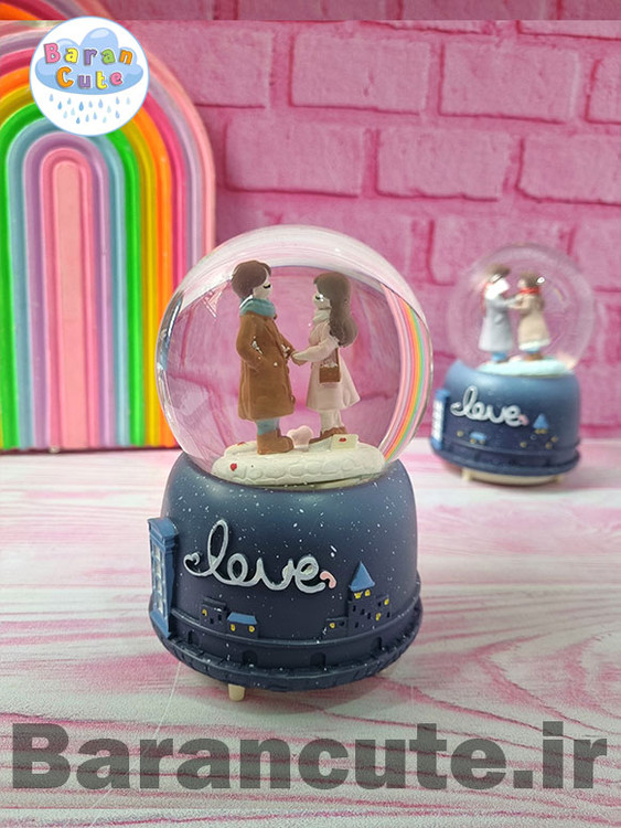 گوی موزیکال پمپی برفی چراغ دار سایز بزرگ طرح عاشقانه