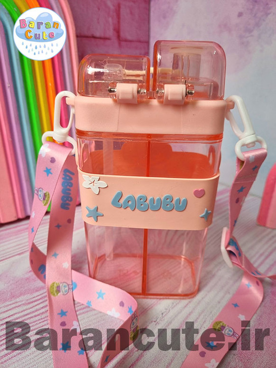قمقمه فانتزی وارداتی دو مخزنه طرح لبوبو صورتی