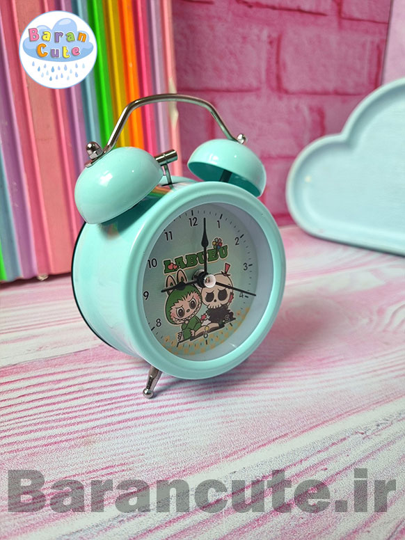 ساعت رومیزی فانتزی زنگ دار بدنه فلزی طرح لبوبو سبز پاستیلی