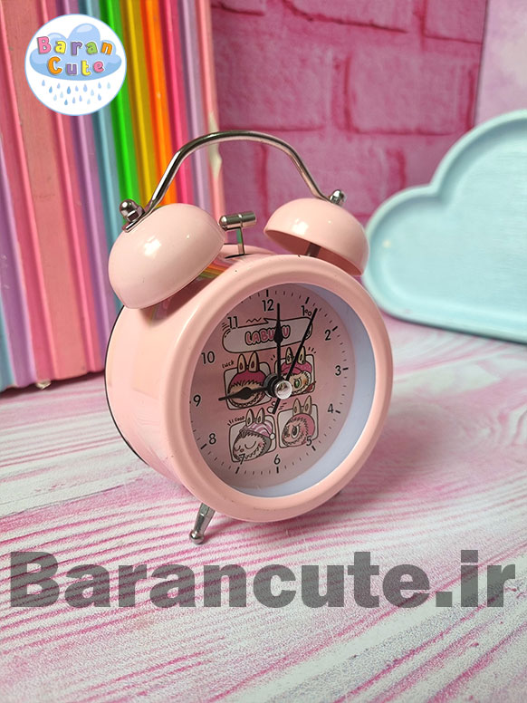 ساعت رومیزی فانتزی زنگ دار بدنه فلزی طرح لبوبو صورتی