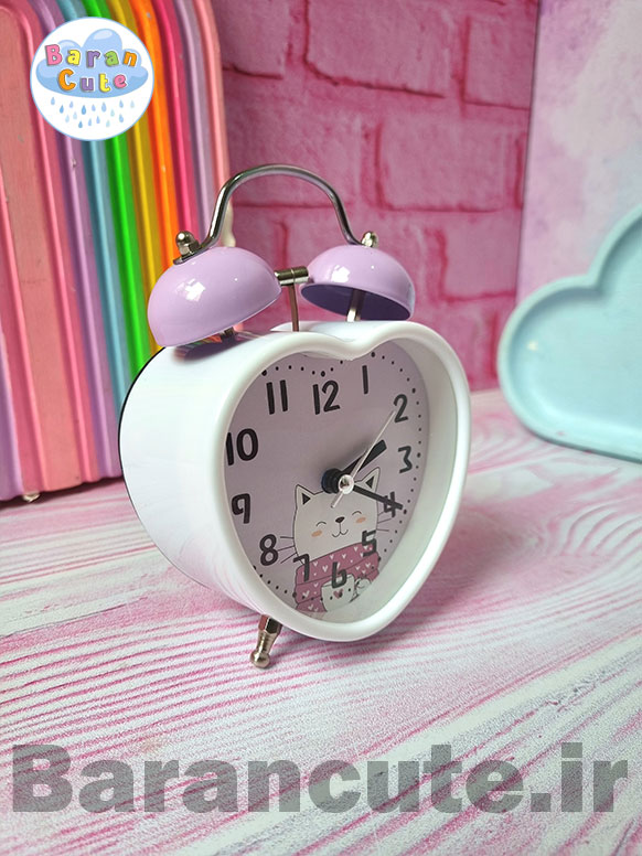 ساعت رومیزی فانتزی زنگ دار بدنه فلزی قلبی طرح پیشی یاسی