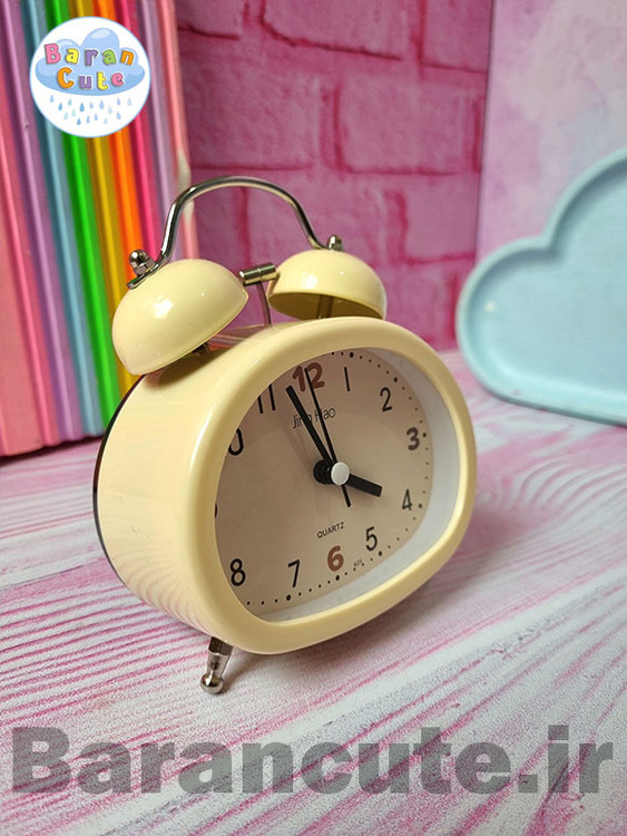ساعت رومیزی فانتزی زنگ دار بدنه فلزی مینیمال رنگ کرم