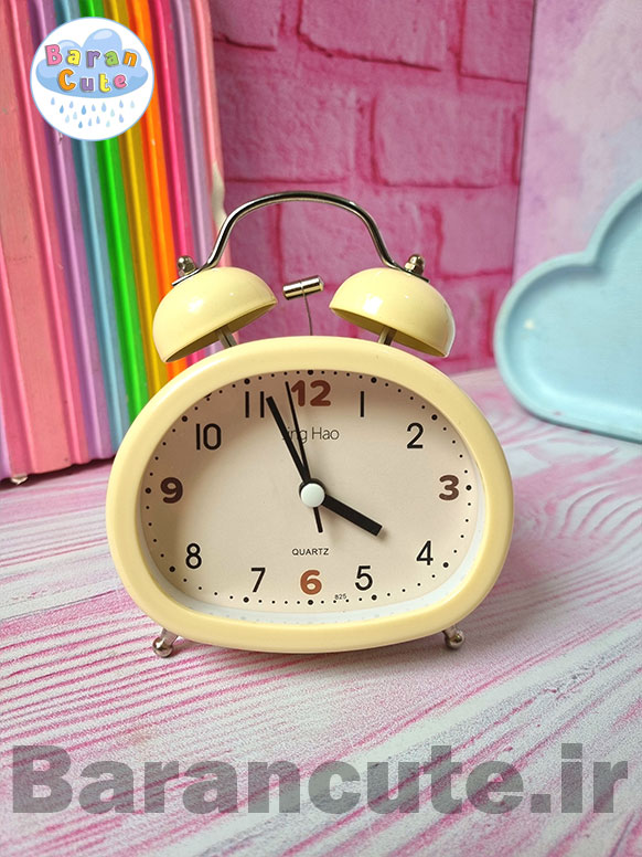 ساعت رومیزی فانتزی زنگ دار بدنه فلزی مینیمال رنگ کرم