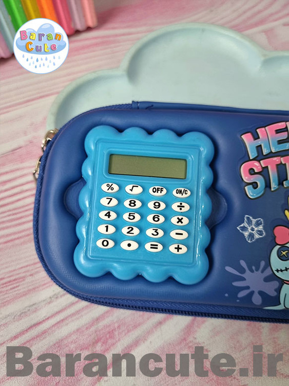جامدادی وارداتی نیم تبلتی برجسته ماشین حساب دار طرح استیج آبی