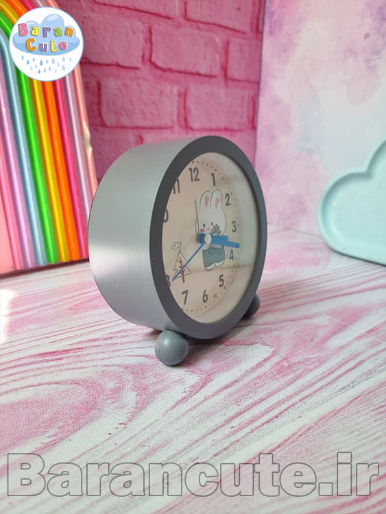 ساعت رومیزی فانتزی زنگ دار مینیمال طرح خرگوش طوسی