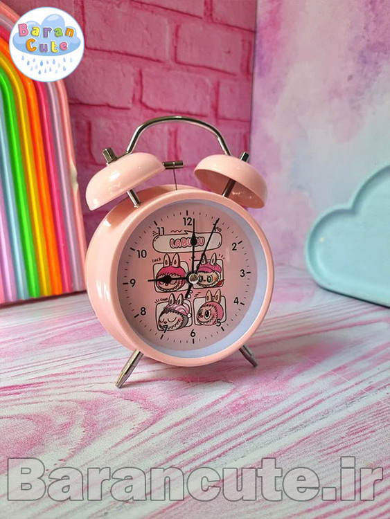 ساعت رومیزی زنگ دار بدنه فلزی سایز بزرگ طرح لبوبو صورتی