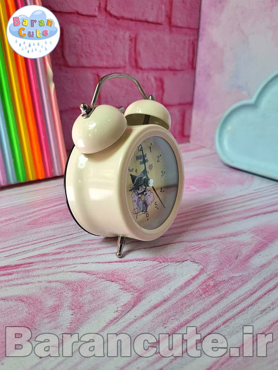 ساعت رومیزی زنگ دار بدنه فلزی سایز متوسط طرح کورومی شیری